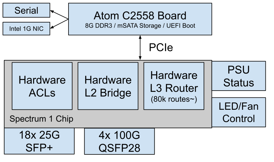 - Mellanox Spectrum SN2100 • 18x SFP28 (25G) + 4x QSFP28 (100G) ports